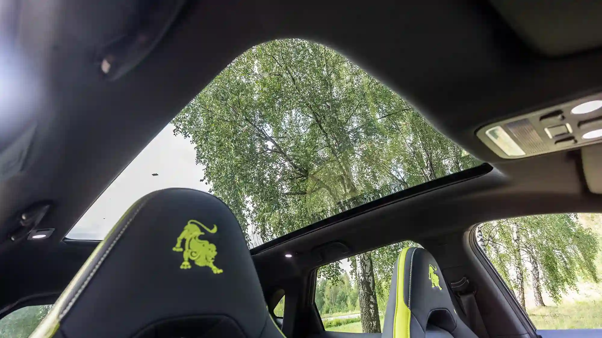 А ведь глядя на салон и не скажешь, что на дороге i‑SKY неспортивен. Обстановка нарядная — модные турбинные дефлекторы обдува и спортивные на вид кресла с интегрированными подголовниками украшены салатовыми вставками. Гранёный кристалл трансмиссионного переключателя — что-то из мира ар-деко. Срощенные экраны виртуального кокпита окружены мягкой полимерной накладкой с массивной планкой «под металл» от двери до двери. Есть и странности. К примеру, прямо по центру передней панели за откидной крышечкой спрятали двухэтажный микробокс, куда даже монетки с трудом поместятся.